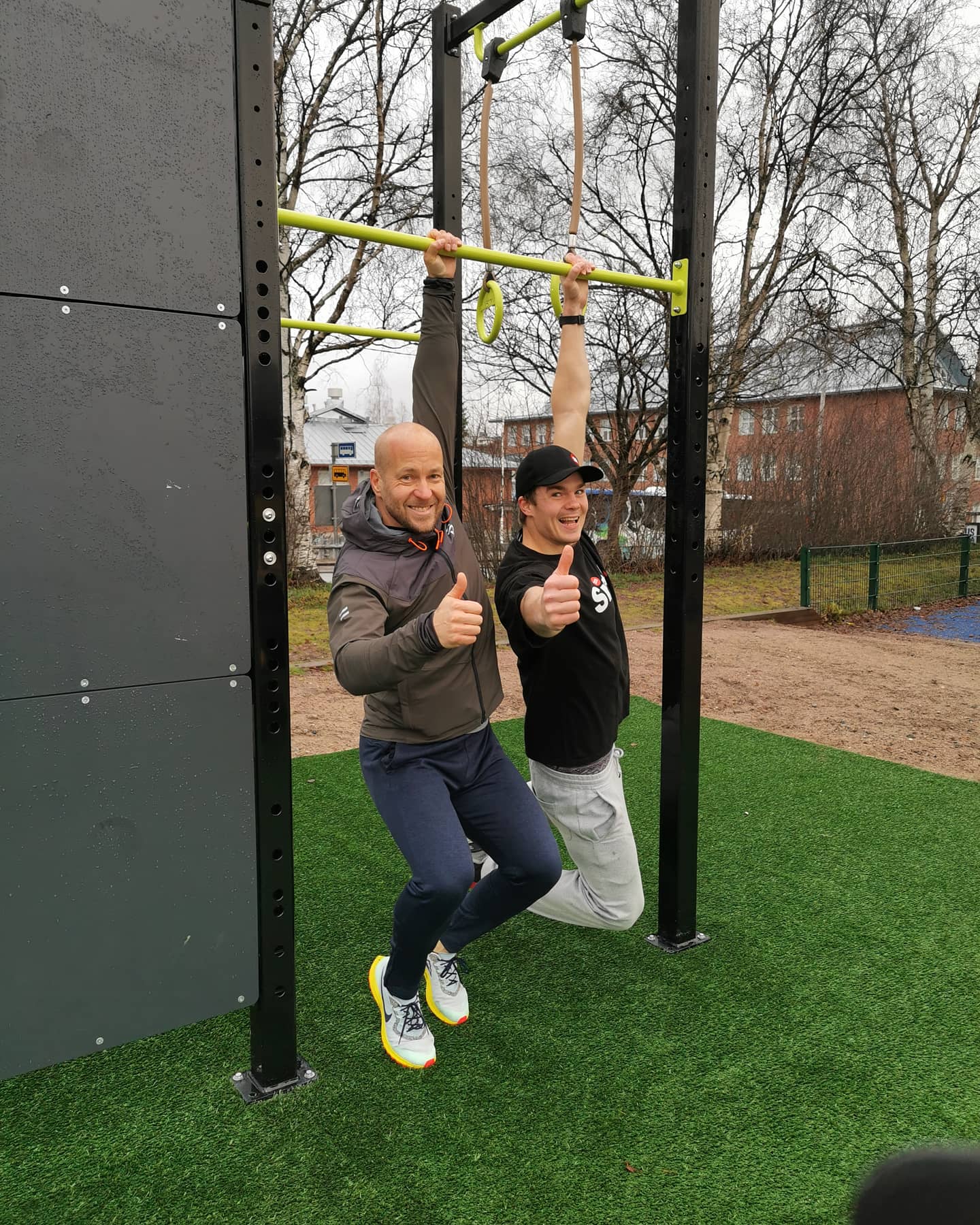 Olimme toimittamassa salaista operaatiota Rovaniemen keskuskentällä. Kun ulkona alkoi sataa vettä ja vaikka olimme hoitamassa salaisia bisneksiä urheilukentällä, niin minä vetäydyin sisälle rappusiin availemaan lonkkiani!