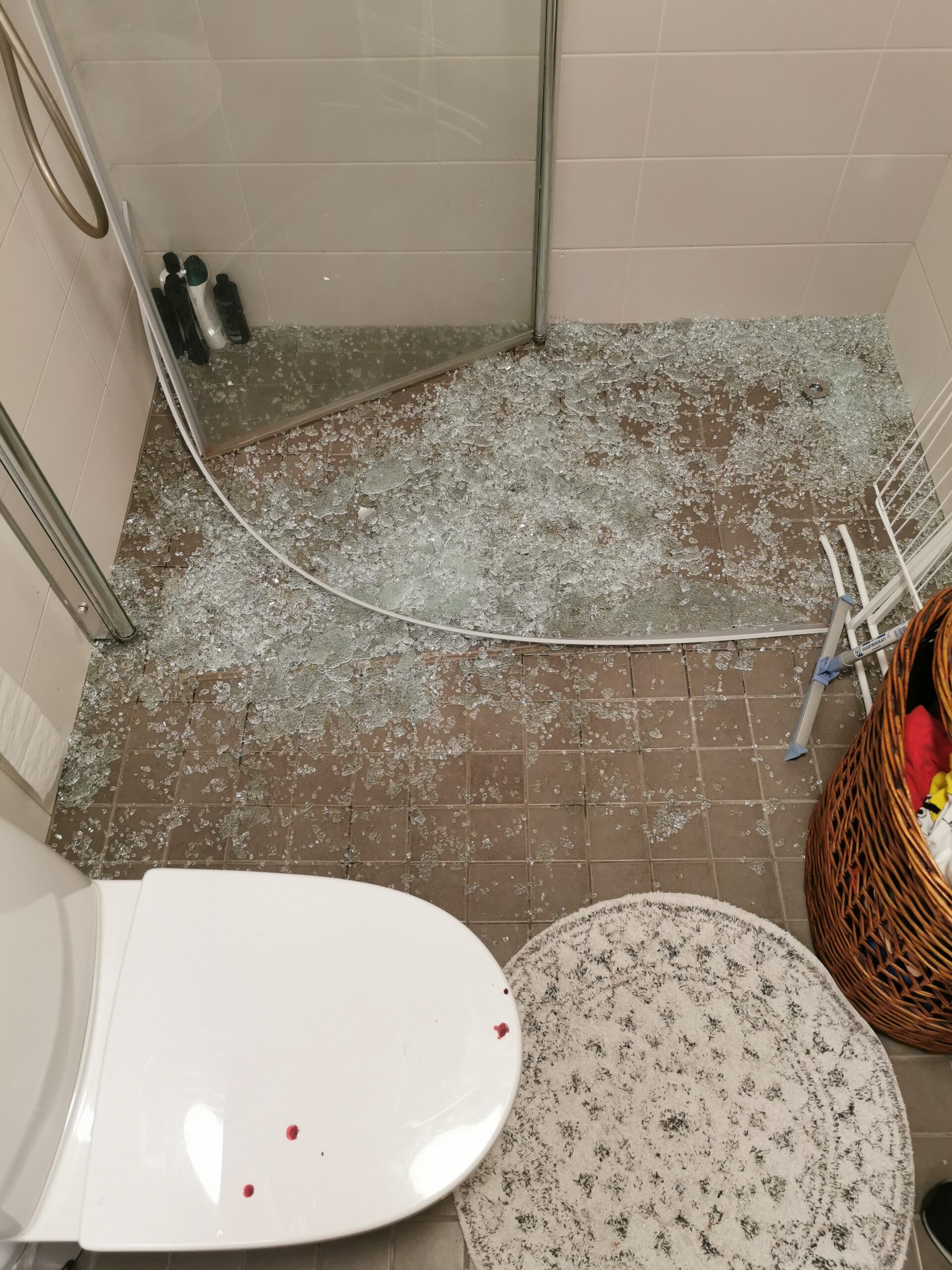 Kommellus sattui yhdeksän jälkeen illalla, joten emme tietenkään olleet isännöitsijään yhteydessä enää tuona päivänä. Seuraavana päivänä olin yhteydessä isännöitsijään, ja sitten asiat lähtivät rullaamaan heti. Haavat kädessäni eivät tietenkään parantuneet kuin taikaiskusta, mutta sirpaleiden täyttämä vessamme tultiin siivoamaan alle kahden tunnin sisällä. Lumo-kodit lupasivat myös maksaa kaikki tapaturmasta aiheutuneet lääkärikulut, side-tarpeet ym.