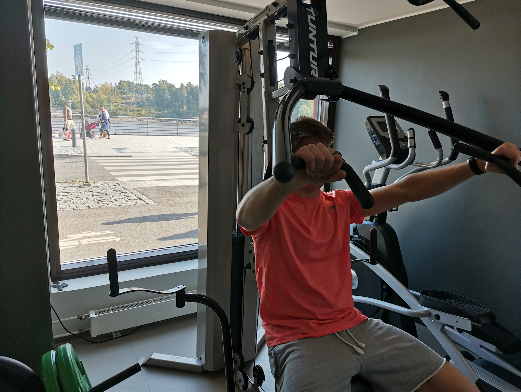 Sitten se liikunta, olen hehkuttanut Mustikkamaan ulkoilumaastoja jopa niin paljon, että jo se hehkuttaminen on käynyt treenistä. Siihen tulee tietysti vielä päälle ne lenkit ym. treenit! Tämänhetkinen tilanne Suomessa on kuitenkin se, että illat pimenevät ja kohta sataa. Tuo sade jatkunee perinteisesti vähintään seuraavat seitsemän kuukautta, joten ulkona liikkumiselle olisi hyvä löytää vaihtoehto. Se löytyy talon alakerrasta!